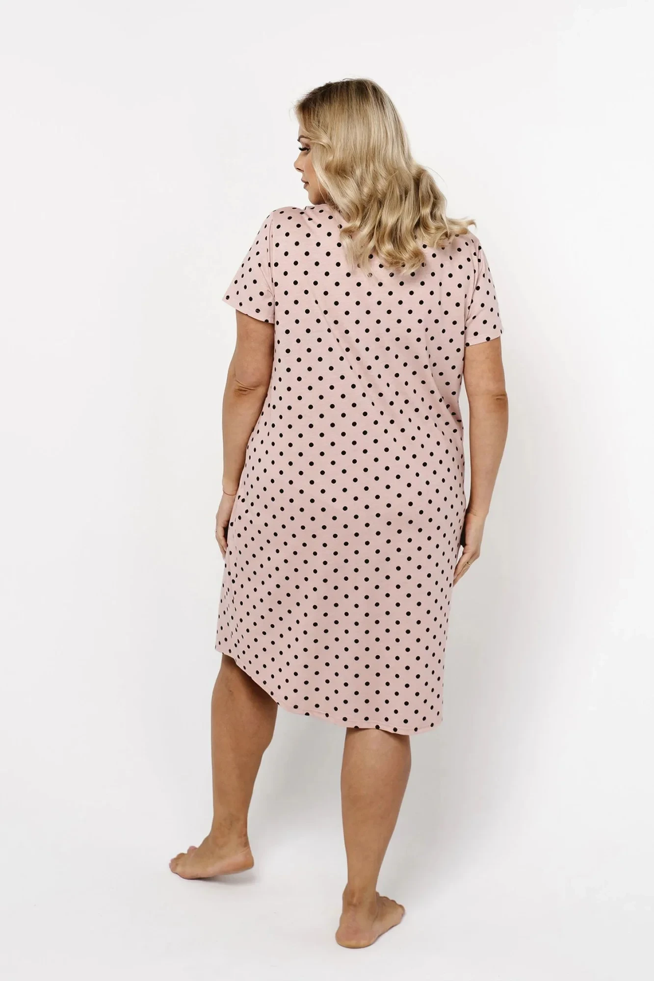 Noční košile Buscato plus ITALIAN FASHION - růžová barva - vyrobená z velmi kvalitní a příjemné bavlny - krátký rukáv - zapínání na patentky - s černými puntíkyMateriálové složení: 100% bavlna