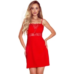 Nočná košeľa Rossane ELDAR - červená farba - vyrobená z kvalitnej viskózy - tenké ramienka - výstrih z efektnej čipky s kvetinovým motívom - košíčky z jemne lisovanej látky - zadná časť z čipkového pásu Zloženie materiálu: 92% viskóza + 5% polyamid + 3% elastan