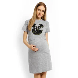Tehotenská nočná košeľa s nášivkou moro mouse. Zvýšený panel na dojčenie. Je možné nosiť aj po tehotenstve. Vysoko kvalitná bavlna. Mäkký materiál.