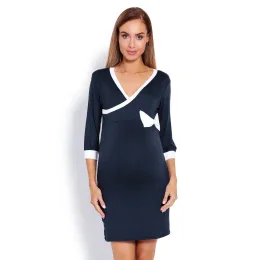 Tehotenská nočná košeľa s kontrastnou mašľou. Obálkový výstrih pre ľahké dojčenie. Je možné nosiť aj po tehotenstve. Potrubie v kontrastnej farbe.