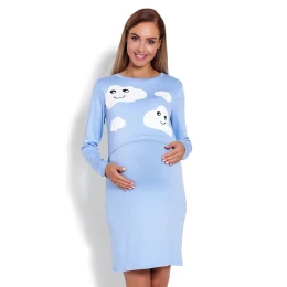 Tehotenská nočná košeľa so zvýšeným horným dielom. Košeľa s dlhým rukávom. Je možné nosiť aj po tehotenstve. Motív mrakov na hrudi.