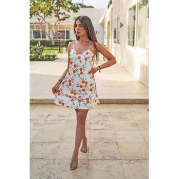 Krásna klasická nočná košeľa zo vzorovaného saténu. Má tenké, nastaviteľné ramienka, vďaka ktorým je top ľahký a odhaľuje ramená. Výstrih do V. Voľný, vzdušný, ženský a veľmi pohodlný strih.