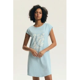Táto pohodlná a štýlová nočná košeľa je skvelou voľbou na pohodlný spánok a relaxáciu doma. Model s polkruhovým výstrihom a krátkymi rukávmi poskytuje voľnosť pohybu a nadčasový vzhľad. Košeľu zdobí jemná potlač, ktorá jej dodáva decentný charakter, zatiaľ čo neutrálna farebná schéma podčiarkuje elegantný a univerzálny štýl. Voľný a pohodlný strih zaručuje, že sa model dobre prispôsobí postave a neobmedzuje pohyb počas spánku. Výrobok je zabalený v praktickom fóliovom vrecúšku, takže sa skvele hodí aj ako darček.