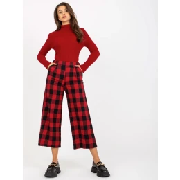 Čierno-červené široké kockované nohavice culotte .