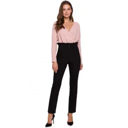 Nohavice s vysokým pásom a opaskom K008 - čierne - Makadamia