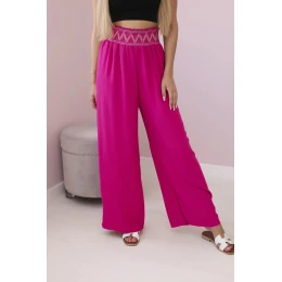 Nohavice so širokým elastickým pásom fuchsiovej farby