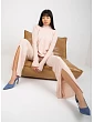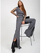 Tmavomodré pletené nohavice so širokými nohavicami a rozparkom.