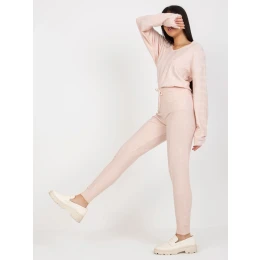 Bledoružové pletené nohavice pre ženy s viazankou.