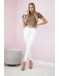 Tieto výnimočné nohavice z farebného denimu sú ideálnou voľbou pre ženy, ktoré si cenia štýl a pohodlie. Sú vyrobené z kvalitného materiálu a poskytujú celodenné pohodlie. Ozdobná mašľa im dodáva jemný, dievčenský šarm, vďaka ktorému sa odlišujú od klasických džínsov. Vďaka univerzálnemu strihu sú ideálne k elegantným blúzkam aj ležérnym tričkám. Perfektne sa hodia na každodenné nosenie, do práce alebo na stretnutia s priateľmi. Stavte na módny vzhľad s nádychom originality. Dostupné veľkosti: S, M, L.