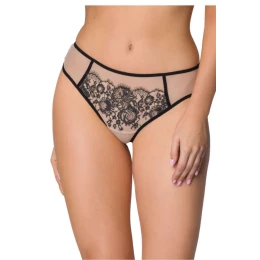 Prekladám... Zvodné nohavičky Frances v béžovo-čiernej farbe. Vyrobené z krásnej čipky a elastického tylu. Zadná časť je z dvojitého elastického tylu. Pas je zdobený mašličkou. Bavlnený klin.