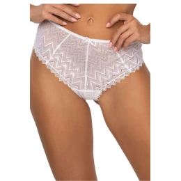 Dámske biele nohavičky s vysokým pásom z jemnej čipky so zvlneným vzorom. Prednú časť zdobí jemná mašlička, zatiaľ čo čipkové lemy na nohavičkách dodávajú ľahkosť a jemnosť. Zadná časť je vyrobená z dvojitého tylu. Elastický pás zaručuje pohodlné nosenie a skvelé prispôsobenie sa postave. Ideálne na každodenné nosenie a špeciálne príležitosti. bavlna 4%Elastan 20%Polyamid 76%
