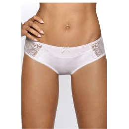 Zmyselné nohavičky Iliana sú k dispozícii v dvoch farbách: bielej a čiernej. Ideálne na zvýraznenie pôvabu ženy. Dokonalá kombinácia hladkej tkaniny a žakárového vzoru na prednej strane s priehľadnou čipkou na bokoch a zadočku. Celkovo poskytujú neuveriteľne pohodlnú a štýlovú spodnú bielizeň. Pás a línie nohavičiek sú lemované ozdobnou páskou.