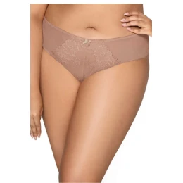 Úžasný a neuveriteľne zvodný spodný diel plaviek Carmela Big. Klasický strih, mierne zvýšený pás a skvelá kombinácia špeciálnych tkanín vo farbe cappuccino. Mäkká, ľahká elastická sieťovina na bokoch s čipkou v strednej časti spodného dielu. Vzdušné čipkované lemovanie jemne obopína zadoček a stehná a vytvára línie nôh. Celkovo vytvára sexy spodnú bielizeň, vďaka ktorej sa každá žena bude cítiť výnimočne. bavlna 5 %elastan 14 %polyamid 81 %
