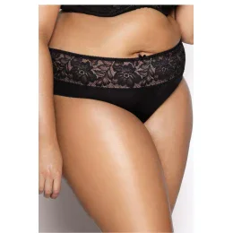 Originálne nohavičky Hannah sú k dispozícii v dvoch farebných variantoch: čiernej a bielej. Vyrobené z nezvyčajnej ľahko lesklej čipky, sexi obopínajúcej boky a zadoček. V prednej časti trojuholníková vsadka z trikotovej tkaniny. Bavlnený klin. Ozdobený lem na prednej strane nohavičiek páskou.