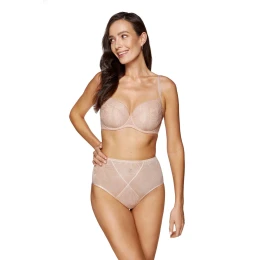 Elegantné nohavičky Cate s vysokým pásom jemne modelujú pás a bruško. Nohavičky s vysokým pásom sú vyrobené z tylu a kvetinovej čipky. Vyšší stred zvýrazňuje a zjemňuje pás. Zadná časť je vyrobená z tylu, takže nohavičky nie je vidieť pod oblečením. Klin nohavičiek je vyrobený z bavlny s certifikátom OEKO-TEX, vďaka čomu sú pohodlné a bezpečné pre intímne partie. Nohavičky boli navrhnuté a ušité v Poľsku.