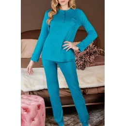 Dámske pyžamo z bavlny. Tričko s dlhým rukávom, dlhé nohavice. Horné otváracie vrecko na boku. K dispozícii v dvoch farbách. Pyžamo zabalené v krabici. Ideálne na darčeky.