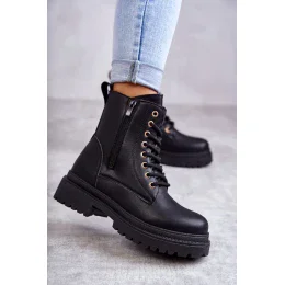 Krásne dámske topánky z ekologickej kože. Majú pevné šnurovanie v prednej časti a zips na ľahké obúvanie na boku zvršku. Stojí na platforme a plochom podpätku s drážkami. Izolovaný interiér s krytom na obuv. Klasický strih, ideálny pre mnohé outfity, ktoré by ste mali mať vo svojom šatníku!