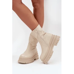Čižmy z ekokože pre ženy sú skvelým návrhom na chladné dni. Umiestnené na pevnej platforme poskytujú stabilitu a dodatočnú výšku. Vďaka zapínaniu na zips sa ľahko obúvajú a zaoblená špička im dodáva nenápadný charakter. Vnútro vyhrievané koženou vložkou len na úrovni chodidla zaručuje teplo a zároveň umožňuje pohyb. Určite by ste ich mali mať vo svojom jesenno-zimnom šatníku!