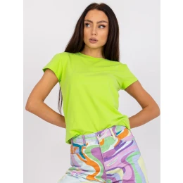 Základné tričko Fluo green Peachy. hladké bavlnené tričko by si bezpochyby malo nájsť cestu do šatníka každej ženy. Je to už železná klasika, ktorá umožňuje módny, ale zároveň minimalistický a univerzálny vzhľad, ktorý si môžete prispôsobiť podľa svojho vkusu. Koniec koncov, základné tričká sú ideálnym východiskovým bodom pre vytváranie ďalších vzhľadov, pretože sa hodia k väčšine outfitov. Tento model má klasické krátke rukávy a obľúbený okrúhly výstrih, takže sa pohodlne nosí a je pohodlný. Vďaka svojmu univerzálnemu strihu je skvelý počas celého roka. Toto dámske tričko je vyrobené zo zmesi čistej bavlny a malého množstva elastanu. Vďaka tomu je tričko priedušné a príjemné na tele, takže ho budete chcieť nosiť stále!