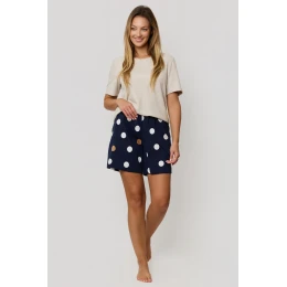 Piżama Oceane krótka to idealny wybór dla kobiet, które cenią sobie wygodę i elegancję nawet podczas snu. Zestaw składa się z bluzki z krótkim rękawem oraz spodenek o klasycznym kroju, które doskonale dopasowują się do sylwetki. Miękka i przewiewna tkanina z wiskozy z dodatkiem elastanu zapewnia maksymalny komfort oraz swobodę ruchów. Dodatkowe kieszenie w spodenkach dodają praktycznego charakteru, a delikatne wykończenia nadają piżamie subtelny, kobiecy urok. Piżama zapakowana w elegancki woreczek z zapięciem.