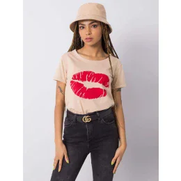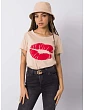 OCH BELLA Béžové bavlnené tričko s potlačou .