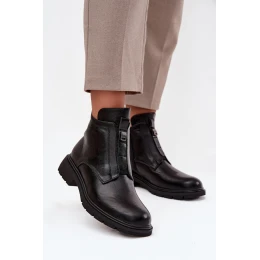 Ocieplane Botki Damskie Na Zamek Z Ozdobnym Detalem Czarne Roselle