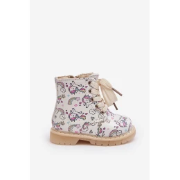 Ocieplane Botki Dziecięce Na Suwak Beżowe Dolida - Kucyki