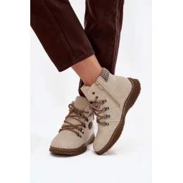 Ocieplane Botki Trapery Damskie Jasnobeżowe Zenaya