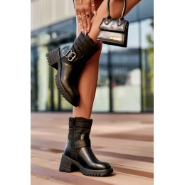 Ocieplane Skórzane Botki Z Klamrą Czarne Osonia