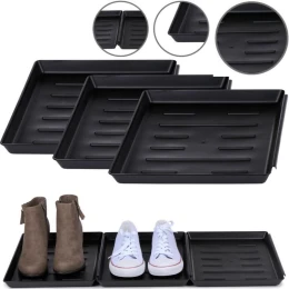 Vyberte si praktickú sadu 3 odkvapkávacích dosiek v čiernej farbe, ktoré sa osvedčia ako stojan na topánky, kvetináče alebo misky pre domáce zvieratá.