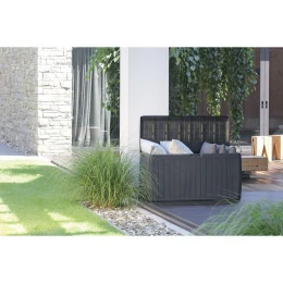 Szukasz czegoś do przechowywania narzędzi, kocyk lub poduszek na tarasie, balkonie lub w ogrodzie? SKRZYNIA OGRODOWA 290L ANTRACYT BOXE BOARD świetnie spełni tę funkcję i dopasuje się do każdej aranżacji.