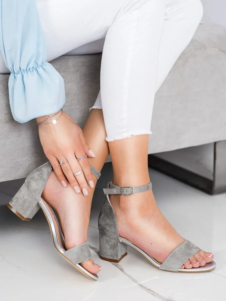 Originální lodičky dámské šedo-stříbrné na širokém podpatku