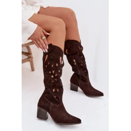 Otevřené kozačky z přírodního semiše Zazoo 3167 Čokoládové