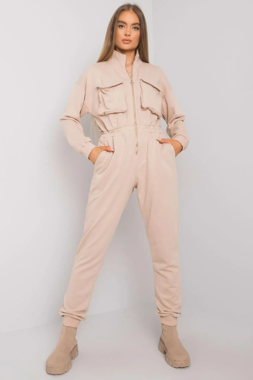 Béžový bavlnený overal na zips. Ideálne pre každodenné nosenie. Bavlna 70%