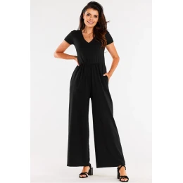 Široký overal z veľmi príjemného a mäkkého úpletu. Vrchný diel s krátkymi rukávmi a výstrihom do V. Elastický pás. Navrhnuté a ušité v Poľsku.