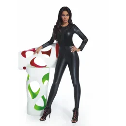 Tento sexi overal je vyrobený z ekokože a zvodnej čipky. Overal má okrúhly výstrih, dlhé rukávy a zapínanie na zips na chrbte. Na chrbte sú nášivky imitujúce vrecká. Mäkkosť: 200 DEN. materiál ECO-LEATHER imituje kožu, je plne krycí, pružný a modeluje postavu. Tento materiál je vyrobený z priadzí od renomovaných výrobcov s medzinárodným certifikátom Oeko-Tex.