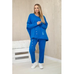 Oversize bavlněný komplet teplákové + kalhoty chrpově modrá
