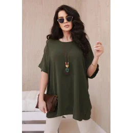 Blúzka nadrozmernej veľkosti s khaki príveskom