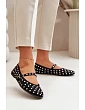 Baleriny wykonane z eko zamszu. Ozdobione licznymi dżetami imitującymi cyrkonie. Zapinane na regulowany pasek, który zapewnia stabilizację i komfort noszenia. Te baleriny to doskonały wybór na każdą okazję. Z pewnością przyciągną spojrzenia! Podczas wyboru rozmiaru prosimy sugerować się tabelą rozmiarów.