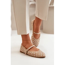 Zdobione Baleriny Z Paskiem Eko Zamszowe Beżowe Tirilissa