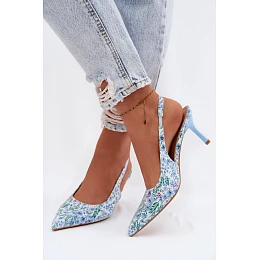 Pridanie recenzie k Ozdobené dámské sandály na jehlovém podpatku s květinovým vzorem modré Olivelle