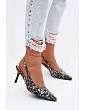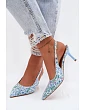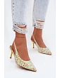 Dámské sandály na podpatku zdobené lesklými prvky imitujícími cihry jsou výjimečnou volbou pro ženy, které rády přitahují pozornost. Nápadné zdobení v květinovém motivu dodává ženský charakter. Model má špičaté nosy, které zdůrazňují eleganci a opticky zeštíhlují nohu. Štíhlý podpatek dodává postavě lehkost a zdůrazňuje její ženský tvar. Ideální volba na výjimečné příležitosti, večerní vycházky nebo oslavy – spojení lesku, elegance a módního vzhledu. Při výběru velikosti se řiďte tabulkou velikostí.