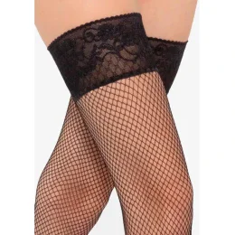 Samodržiace sieťované pančuchy Gatta Margherita 05 v elegantnej čiernej far be s kabaretným sieťovanýmvzorom s väčšími okami, zdobené čipkou so silikónovým pásikom, ktorý udržiava pančuchy dokonale na svojom mieste.