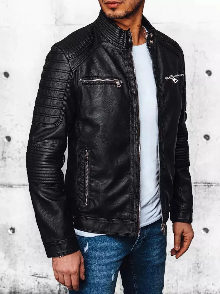 Pánská černá kožená bunda černá model 20543024 - Dstreet