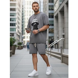 Pánska letná tepláková súprava s potlačou šedá FashionStreet AX0817