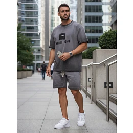 Pánska letná tepláková súprava s potlačou šedá FashionStreet AX0819