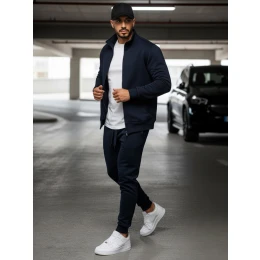 Pánska mikina na zips bez kapucne tmavomodrá BX4567