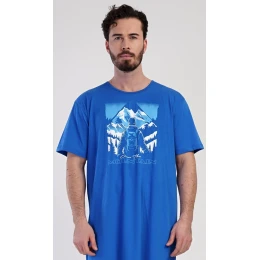 Pánska bavlnená nočná košeľa Mountain s krátkym rukávom. Túto jednofarebnú pánsku nočnú košeľu s okrúhlym výstrihom zdobí obrázok muža lezúceho na horu a nápis "Mountain". Táto košeľa je vhodným darčekom pre všetkých milovníkov hôr a turistiky. Použitý materiál je príjemný a pružný na dotyk. Obsah bavlny je 100 %.
