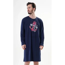 Pánská noční košile s dlouhým rukávem Kotva. Pánská noční košile s dlouhým rukávem má na hrudi obrázek výrazné kotvy. Použitý materiál je jemný a poddajný na dotek.