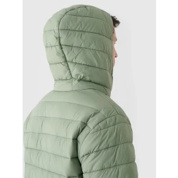 Pánska páperová bunda s kapucňou má integrovanú kapucňu bez možnosti nastavenia. Krk je chránený nízkym stojačikom. Rukávy s manžetami ukončenými elastickou gumou. Na bokoch sú 2 otvorené vrecká. Zatiaľ čo na vnútornej strane je vrecko na zips, ktoré umožňuje bezpečné prenášanie cenných vecí, napríklad telefónu. Pánska páperová bunda sa zapína na jednosmerný hlavný zips a je vybavená vnútornou vetruvzdornou légou, ktorá znižuje prenikanie chladu dovnútra bundy. Spodná časť s elastickou gumou.